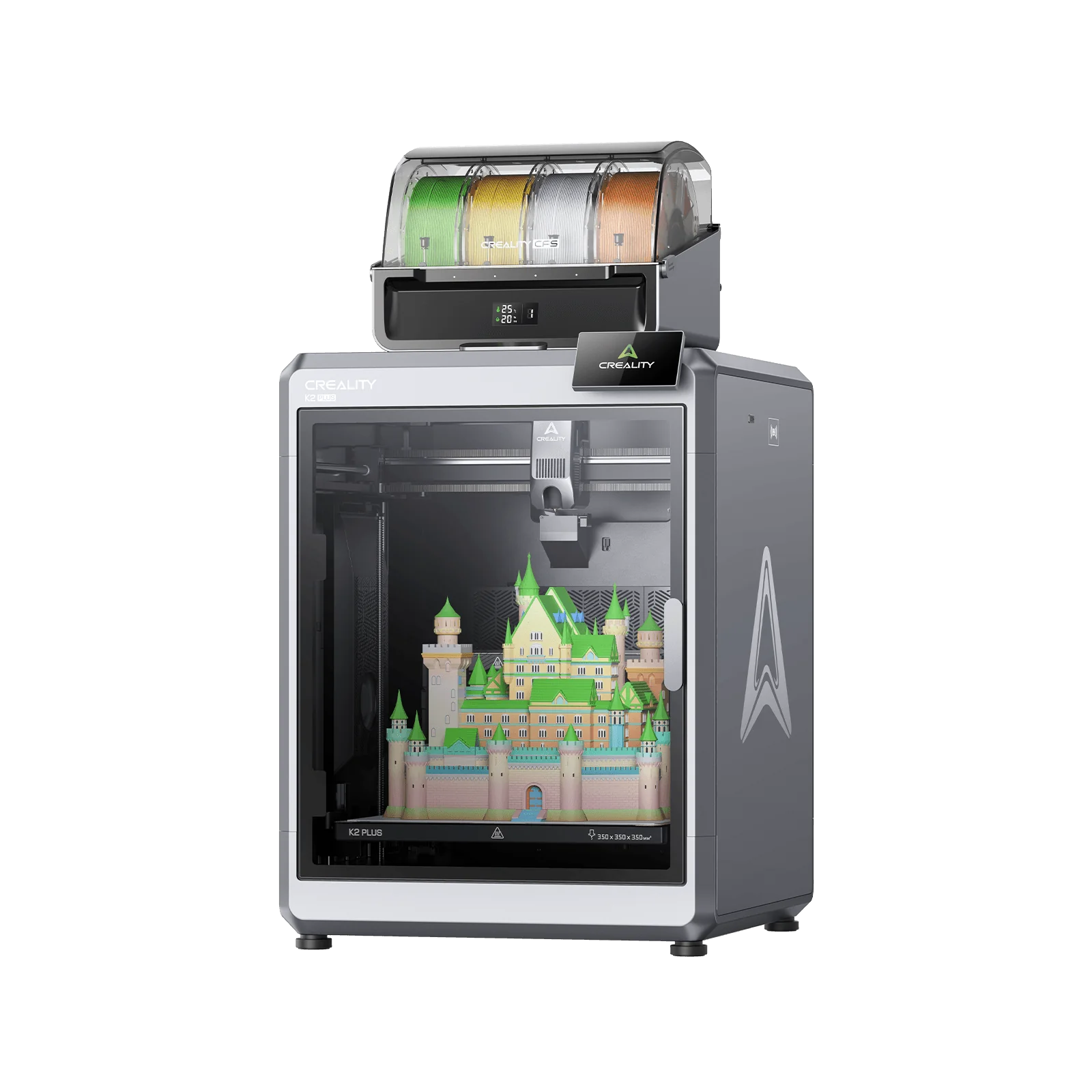 Creality K2 Plus Combo to kolejna nowość na rynku, która kusi użytkowników swoją wszechstronnością i nowoczesnymi funkcjami. Oferuje pole robocze o wymiarach 350 x 350 x 350 mm, co pozwala na drukowanie większych modeli bez konieczności dzielenia ich na mniejsze części. Ta drukarka korzysta z technologii FDM, co zapewnia łatwość w użyciu i dostępność różnych filamentów.